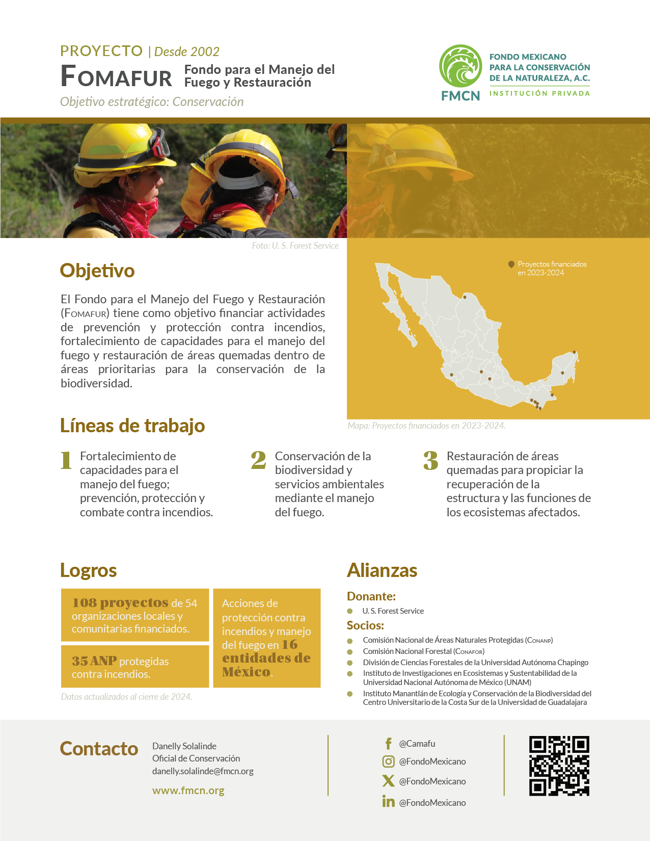 En 2002, mediante la asignación de un patrimonio, FMCN creó el FOMAFUR para dar permanencia a las actividades de manejo del fuego. Mediante convocatorias bianuales dirigidas a organizaciones y comunidades rurales e indígenas, FOMAFUR busca contribuir al fortalecimiento e implementación de las políticas públicas vigentes en el tema de conservación de la biodiversidad y los ecosistemas forestales de México (Ley General de Desarrollo Forestal Sustentable y Programa de Manejo del Fuego 2020-2024). FOMAFUR está alineado con las tendencias internacionales en los temas de protección contra incendios forestales y manejo del fuego (United Nations Environment Programme – 2022; Spreading like Wildfire – The Rising Threat of Extraordinary Landscape Fires; A UNEP Rapid Response Assessment; Nairobi).